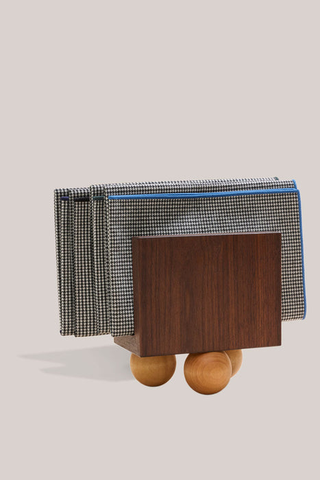 We are so pleased to introduce the third edition of our beloved (and functional) tabletop accessory - Les Trois Napkin Holder. Our mid-century modern-inspired beauty just got a moody upgrade. Dark walnut wood is the main attraction, while a trifecta of birch wood spheres act as the base. Keep this beauty spinning to catch its best angle!