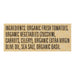 - Organic ingredients grown without synthetic pesticides or fertilizers.