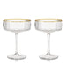 With the stunning clarity of lead-free crystal and a sleek rippled texture, this pair of gold-rimmed stemmed coupes brings understated elegance to any cocktail. This stylish glassware has a subtly contemporary shape that enhances your sipping experience and complements any decor.