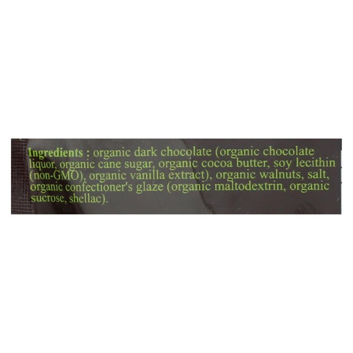 - Organic dark chocolate coats crunchy walnuts for a delightful combination of flavors.