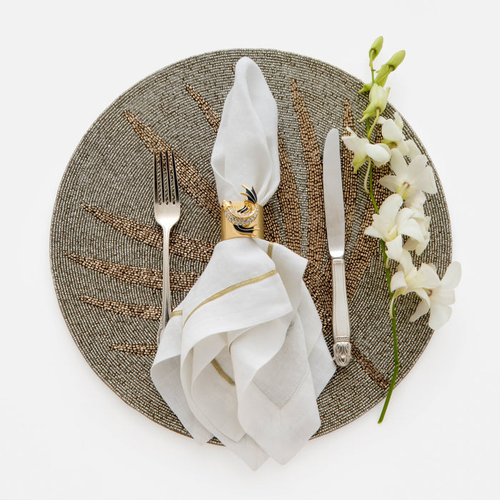 I feel like I am seeing this leaf shape everywhere – and I was dying to pop it into neutrals and onto a placemat. This palm frond placemat it really goes with everything and I love the DRAMA!