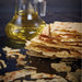 ##0##These golden feather-light semolina flatbread crackers are alluringly crispy and thin. The aroma of freshly baked bread and toasted flavor are enhanced by a drizzle of olive oil and a sprinkle of salt. This style of flatbread has ancient origins and has been a Sardinian specialty for thousands of years. Historically, it was a staple of shepherds who needed a shelf-stable bread to last through the long winters and transhumance. This variation, paper-thin with a drizzle of olive oil, is known as pane guttiau in Sardinian. It is enjoyed as a delicate and savory cracker that can pair with anything from olives to cheese and charcuterie. The poetic name of Pane di Musica evokes sheets of parchment used for notating music.