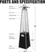 - Heating Area: 42,000 BTU burner heats up to 200 sq ft, the heat is transferred upward through the explosion-proof glass tube and radiated by the top reflector, heating up quickly and smoothly.