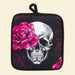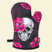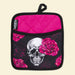 Pretty in pink! Our Pink skull rose oven mitts and potholder set features a white skull sketch on a black background with bright pink roses. Now you’ve got something to take your black velvet cupcakes and other Goth treats out of the oven…and who can resist a pop of pink in the kitchen?
