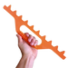 A handheld plastic spacer designed to evenly space 9 frames inside a 10-frame honey box for deeper comb and easier uncapping.