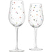 - Perfect for summer entertaining, this Polka Dot Stemmed Wine Glass Set of 2 is a great way to show off your personal style. Add a dash of your favorite color to your spirits even if you're out of the house. The bold polka dot pattern makes it easy to add a touch of style, while the simple stem adds sophistication and functionality. PLEASE NOTE: NOT DISHWASHER SAFE.