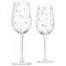 - Accentuate your home decor with these polka dot wine glasses. Made of durable, borosilicate glass, this two-pack will be your go-to for any occasion. Enjoy a chilled glass of your favorite vino with elegance! These polka dot wine glasses are the ideal way to relax and enjoy a nice drink on a hot summer day. These glasses are perfect for use during dinners, parties or other gatherings with friends. Treat your wine to a drink in these exquisite, lead-free glass polka dot wine glasses.