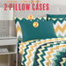Say goodbye to wrinkles and hello to effortless style. This wrinkle-resistant set maintains a crisp appearance without the need for constant ironing. The deep pockets ensure a secure fit on mattresses up to 14 inches, keeping your bed looking neat and tidy. This six-piece set includes a flat sheet for a luxurious drape, a fitted sheet for a perfect fit, two printed pillowcases showcasing the bold chevron design, and two solid teal pillowcases for a touch of balance.