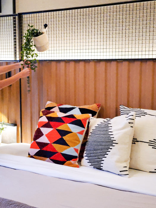 Add a bit of personality and uniqueness to the most boring bedroom, couch, and sofa. Hand-loomed with 100% recycled chenille scraps, this one-of-a-kind upcycled fabric pillow cover with a soft texture, vibrant colors, and fun pattern transforms your living space with relaxed warmth. The soft-touch chenille fabric is a must-have when you want to feel cozy!