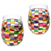 - This set of 2 stemless wine glasses is hand crafted with colored stain-glass in an elegant pattern. The color combinations and design on these glasses make for beautiful tabletop decor and a great conversation starter when entertaining guests. These are perfect for housewarming gifts, birthday gifts, wedding gifts, or any occasion!