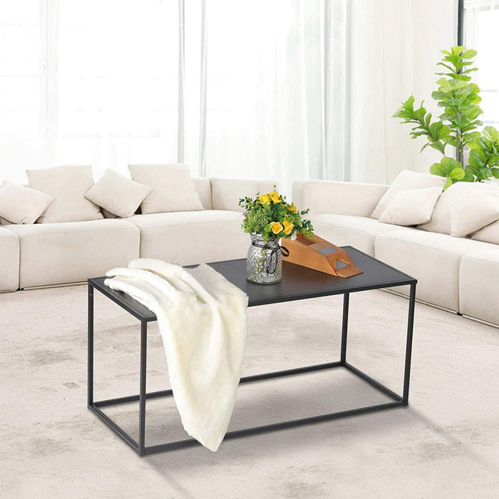 Simple Coffee Table with Anti-Scratch Design Premium Rust Resistant Industrial Cocktail Table for Living Room Black