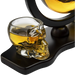 - BEAUTIFUL SET: 4-Piece Skull Head Skeleton Whiskey Liquor Vodka Clear Crystal Set with 2 Shot Glasses Shooters, 1 Decanter and beautiful wooden tray
