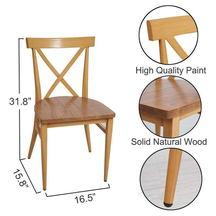 - This classic style chair is built from solid wood seat with heavy-duty metal back and legs, providing great quality and timeless design.