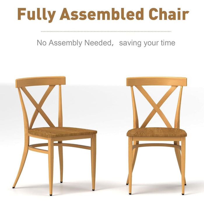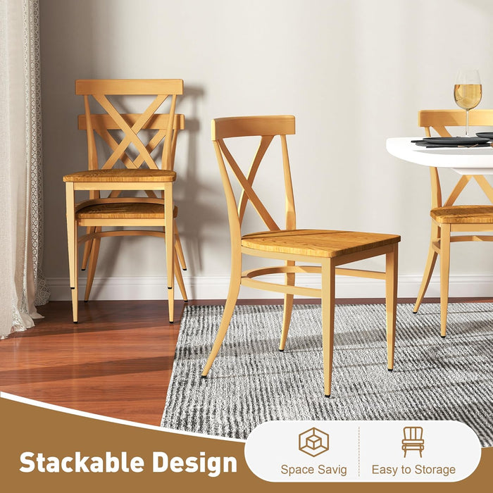 Stackable Side Chairs with Solid Wood Seat&Sturdy Metal Legs, Yellow
