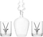 - Inspire the spirit of the outdoors with the Antler Decanter Set. This decorative, 25 oz decanter measures at 8.5" in height, 5.5" in width at the top, and has a 3.5" base. A touchable glass antler stopper and two 12 oz stag antler glasses. Each glass has been decorated showcasing the beauty of wild animals on each glass. Its slender neck holds a replaceable stopper topped with antlers, while the elegant deer adorn every glass. Rare, eye-catching, designed in high end quality!
