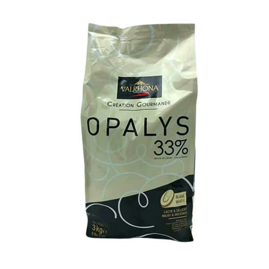It is an excellent quality single-origin dark chocolate. Expertly blended with 33% cocoa butter and carefully selected cocoa beans, it has a clean, rich flavor and texture. Valrhona Opalys is perfect for baking and turns any recipe into a luscious, decadent delight.