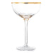 - Add a special touch to your celebration with this set of 4 gold rimmed champagne coupe glasses. The champagne coupe is widely considered to be the most romantic of drinking vessels. So you and your friends are celebrating the special event of a life time. Make it extra special by adding these 4 vintage gold rimmed champagne coupe glasses to the mix! Whether you're sharing a bottle of champagne, wine or cocktails, these classy glasses are sure to impress your guests.