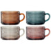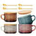 - This exquisite set of coffee mugs is available in a muted color palette that includes rich red, burnt orange, soothing cloudy blue, and elegant beige. These muted hues add a touch of sophistication and versatility, making them suitable for a variety of settings and occasions. Whether you're enjoying your morning coffee or indulging in an evening hot cocoa, these mugs will elevate your drink experience.