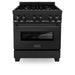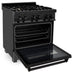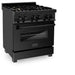 Experience Attainable Luxury® with the ZLINE 30" Dual Fuel Black Stainless Range. ZLINE’s dual fuel range combines a high-performance gas stove top with an electric convection oven. ZLINE’s professional black stainless steel stove is truly unique in the industry. Each piece is hand-cut and crafted utilizing premium grade stainless steel which accomplishes its sophisticated “piano black” finish through a technique called PVD (Physical Vapor Deposition) Coating.