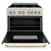 Combining the professional power and functionality of a ZLINE Range with stunning champagne bronze accents, this sophisticated line of professional ranges brings a new meaning of elegance. Create an unforgettable kitchen unique to your style with champagne bronze knobs, handles, legs, and brass burners. Choose from a variety of finishes from ZLINE's Autograph Edition, including Champagne Bronze, Matte Black, and Gold.